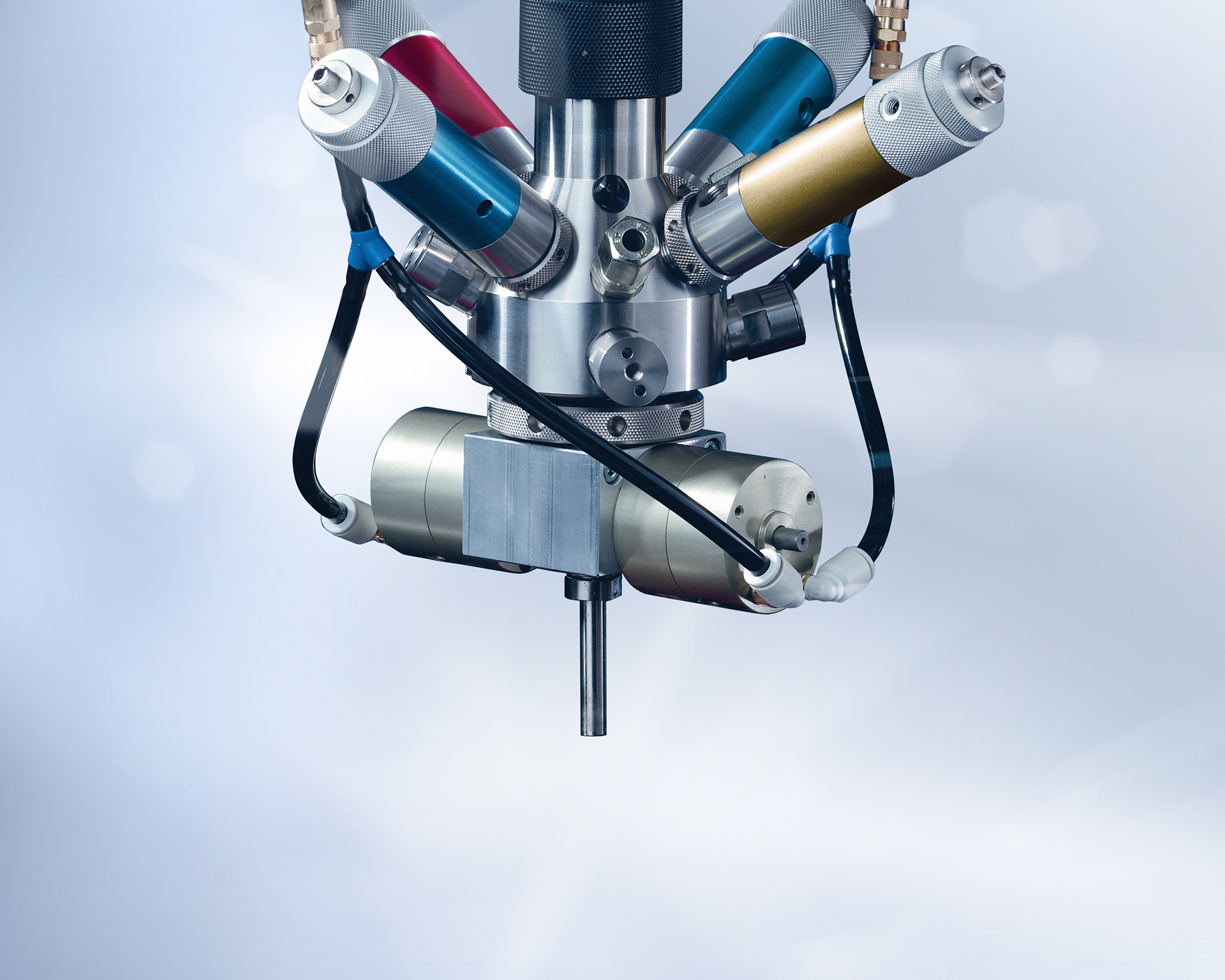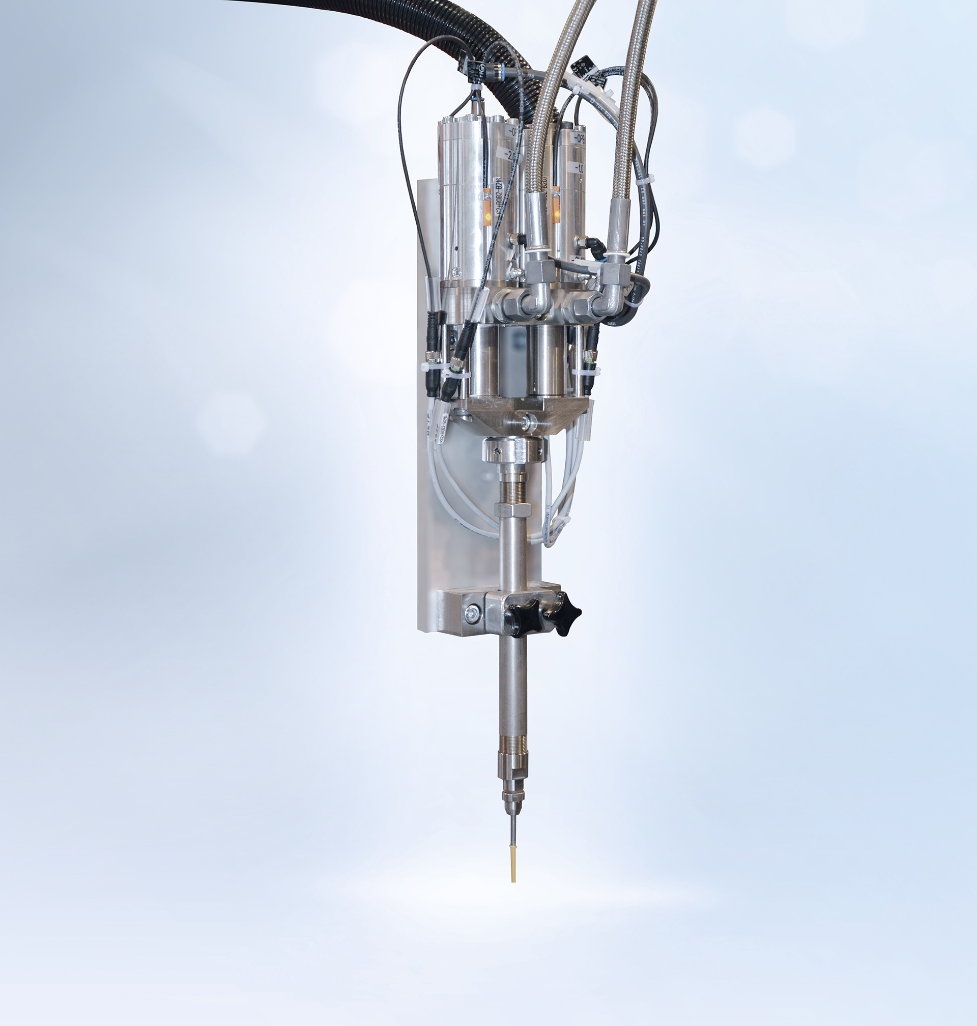 Mit servogesteuerter Keramik-Ventiltechnik setzt das MS-C Maßstäbe in Reproduzierbarkeit. Die Trennung von Ventil- und Mischkammerebene macht das System maximal wartungsfreundlich.