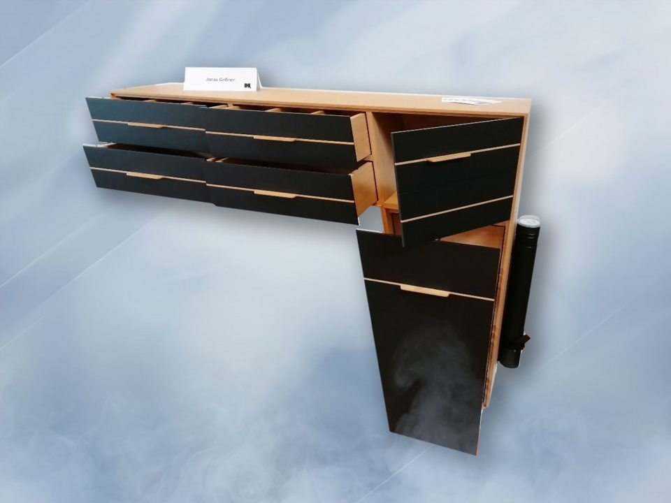 Ein Meisterstück, gebaut aus einem meisterlichen Material: Mit seinen erstklassigen Schubladen-Vollauszügen hat Jonas Geßner sowohl seine Tischlerhandwerk-Meisterprüfung bestanden als auch gezeigt, warum Polyurethan-Blockmaterial von RAMPF eine leistungsstarke Holzalternative ist.
