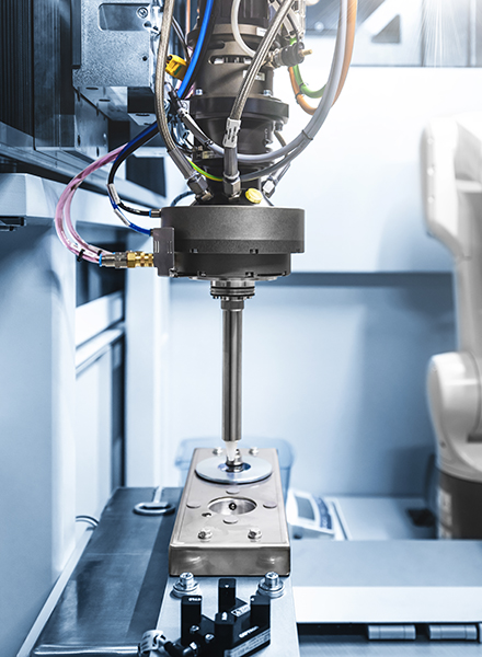 A dual sliding table is autonomously loaded and unloaded by the KMR iisy mobile robot from KUKA. This robotic handling enables flexible, automated processing of workpieces from various areas – a key contribution to maximum production flexibility.